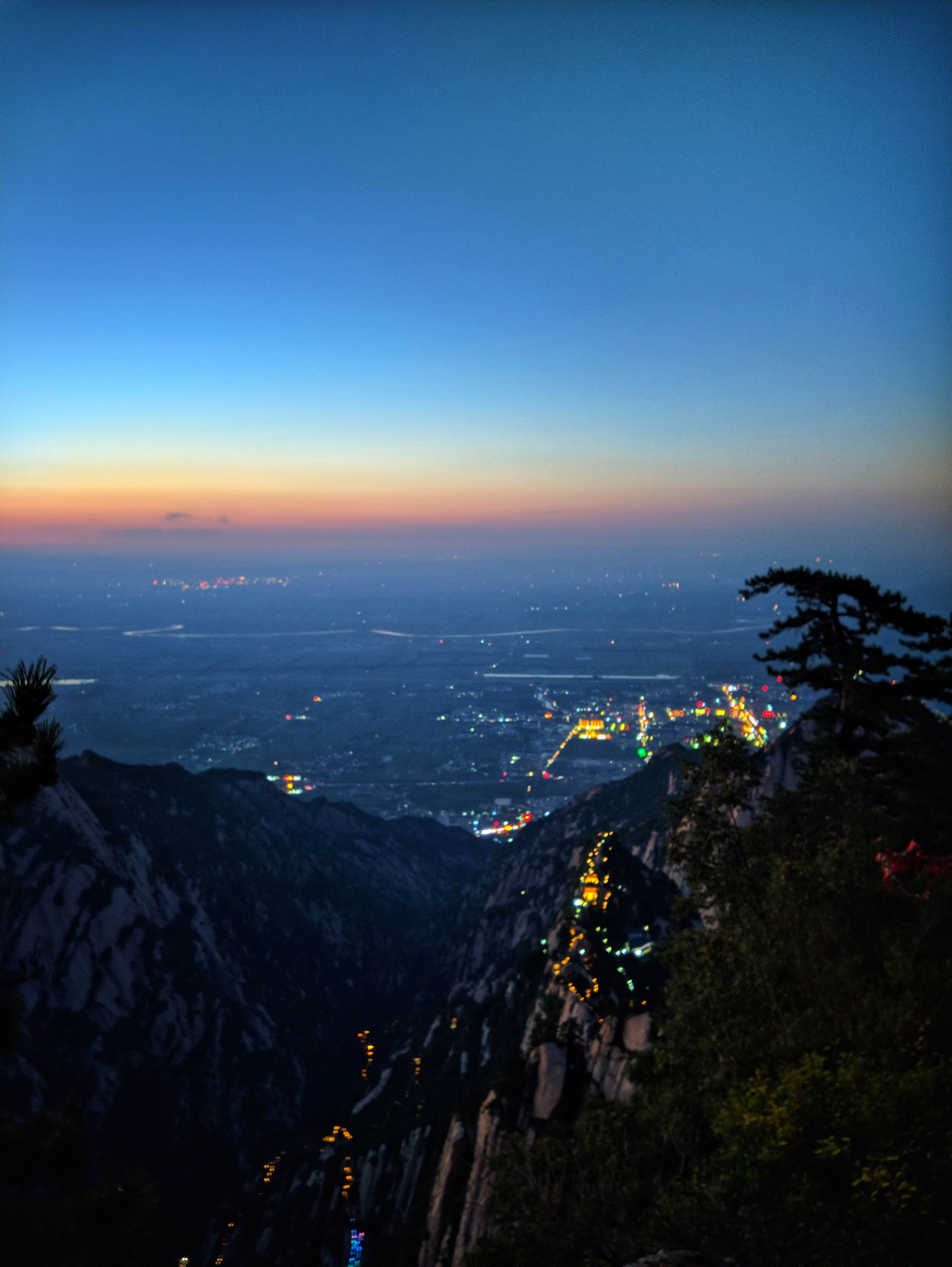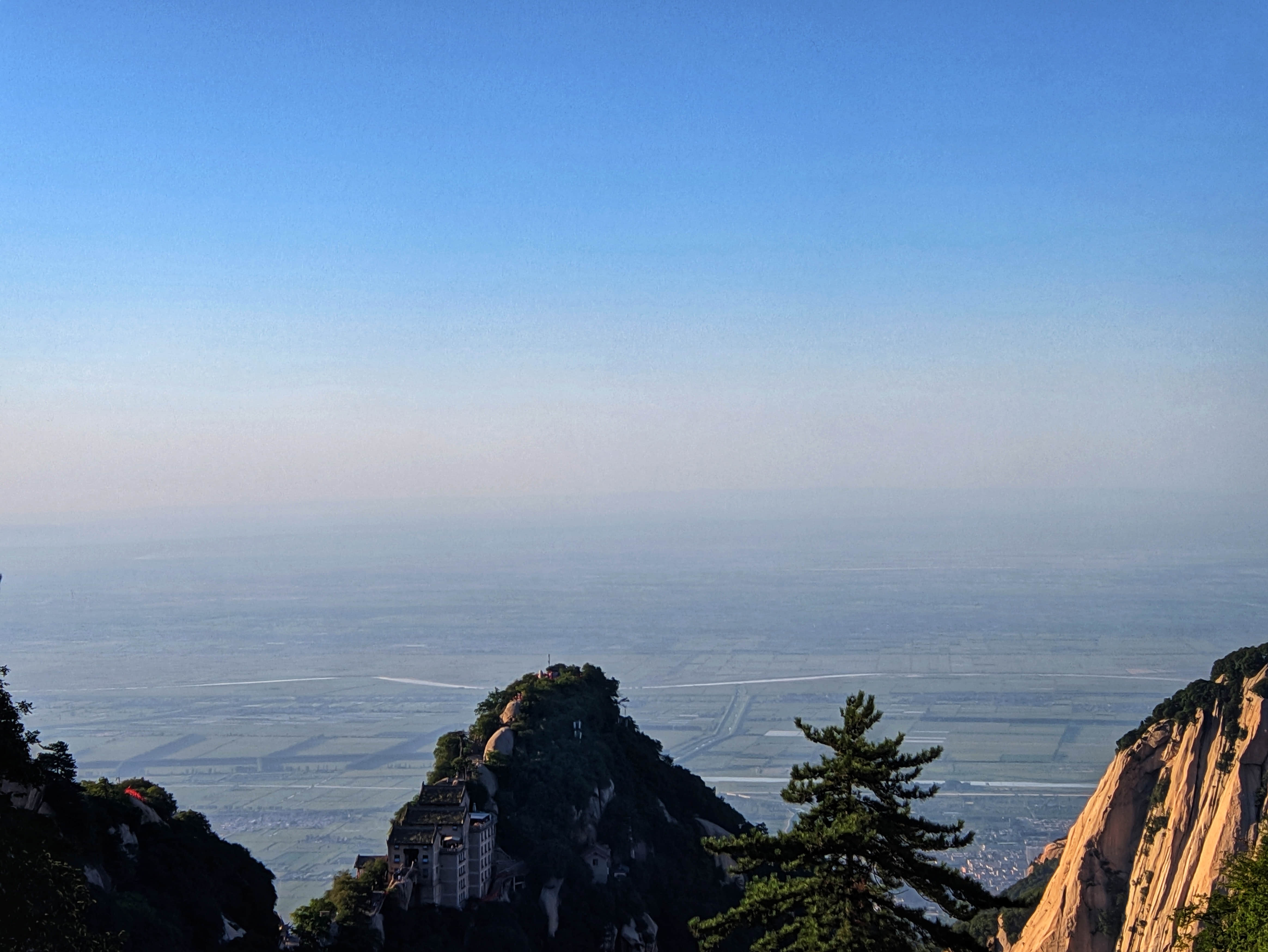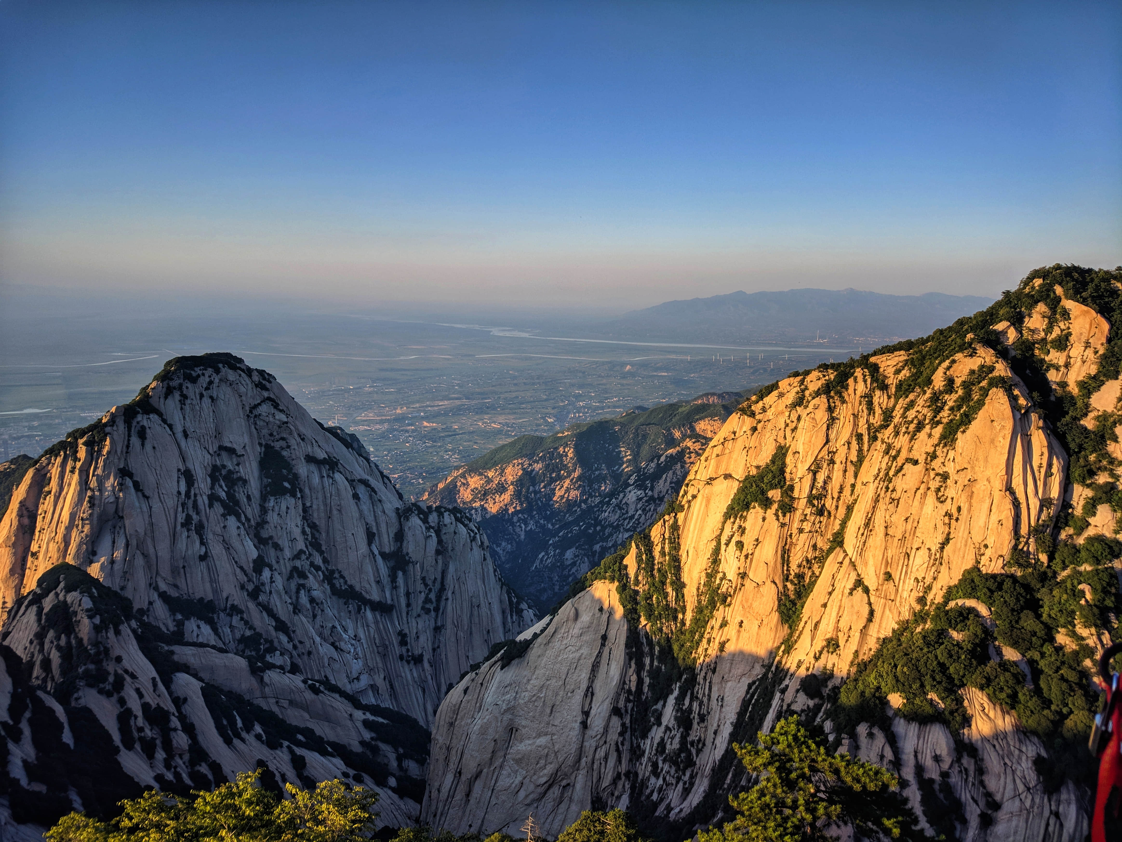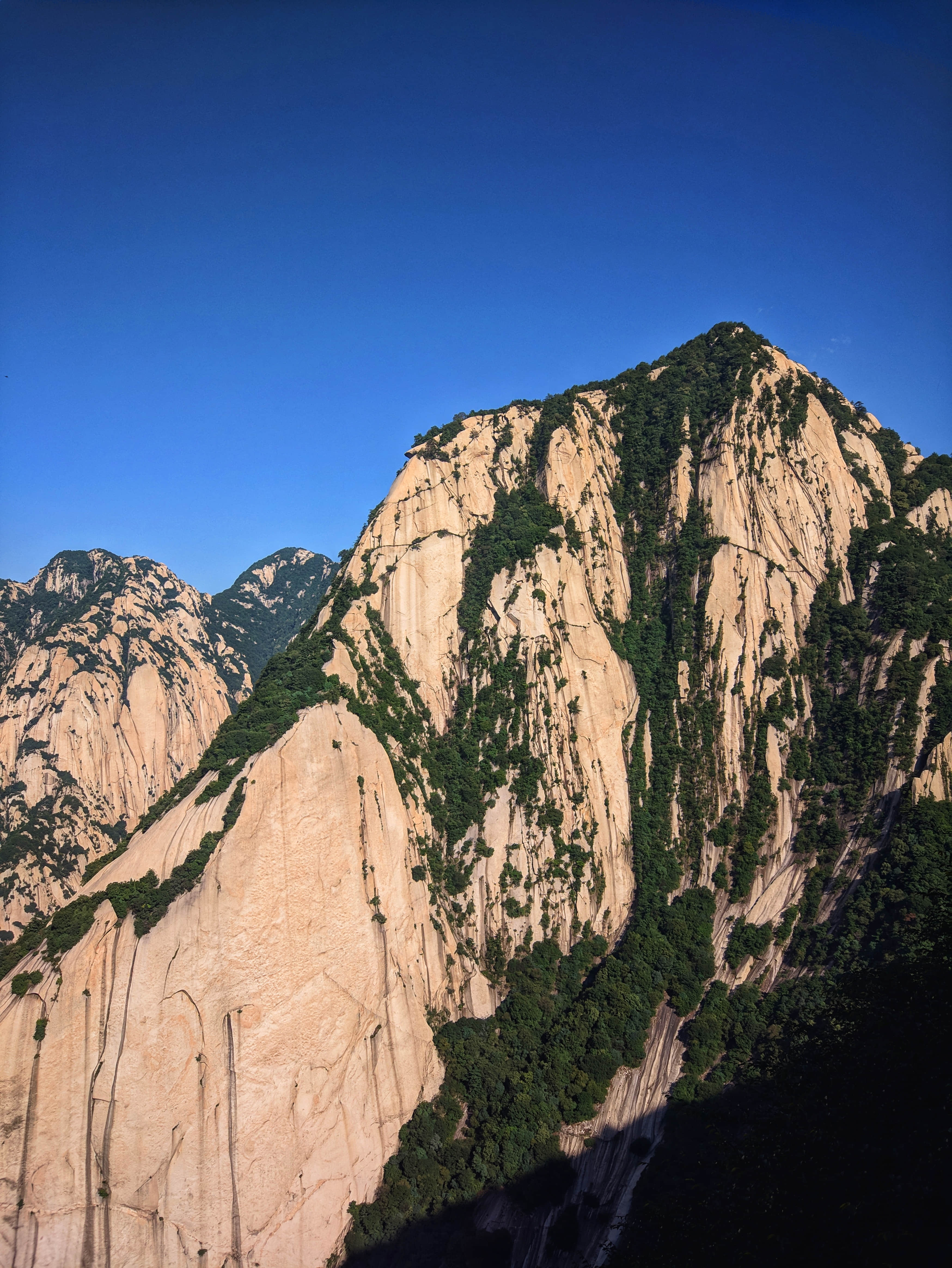 上次夜爬华山的时候,崖壁在月光的映衬之下,像是被白雪覆盖一般。而这次白天爬,则又是另一番风味。
