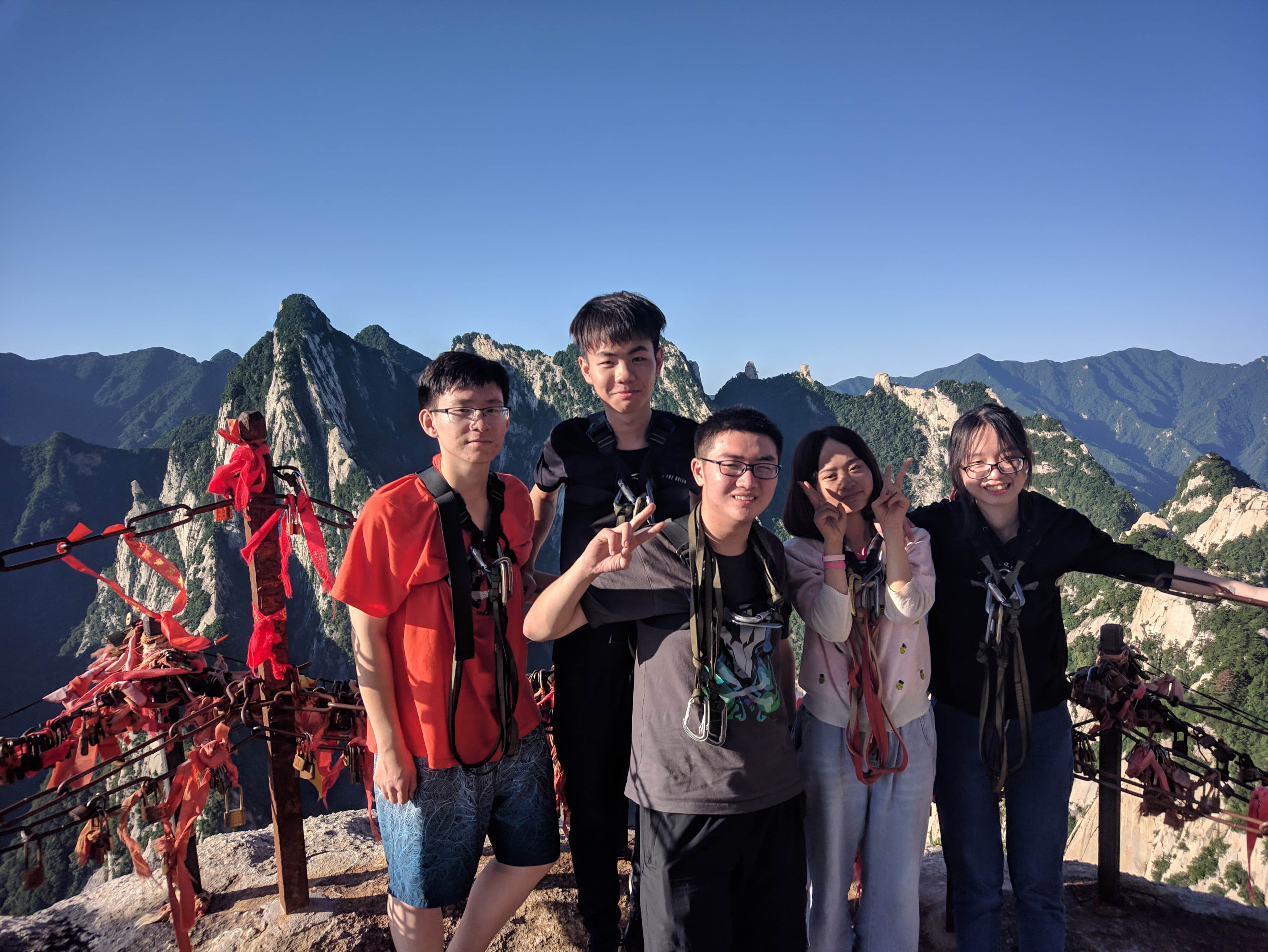 很快我们就到达北峰顶——华山论剑了,在这里拍了本次爬山的第一张合照。