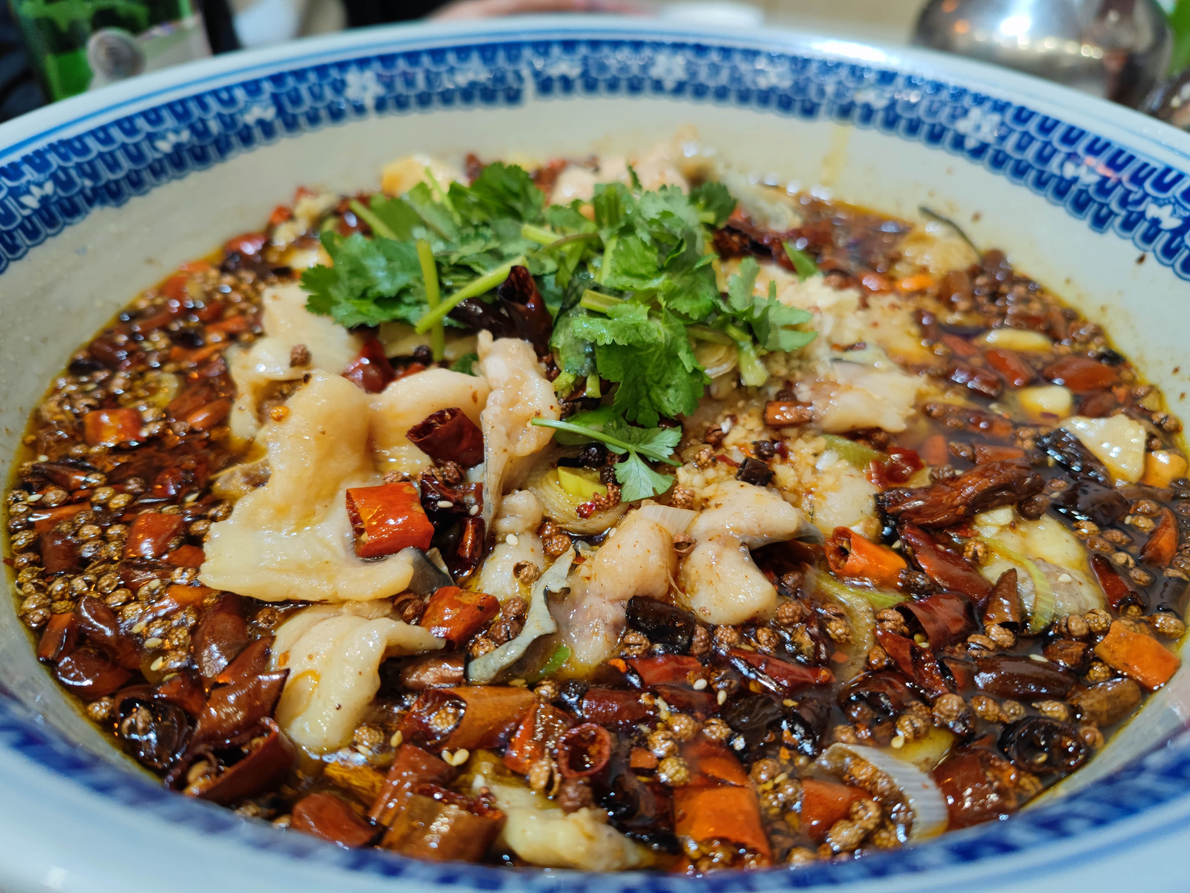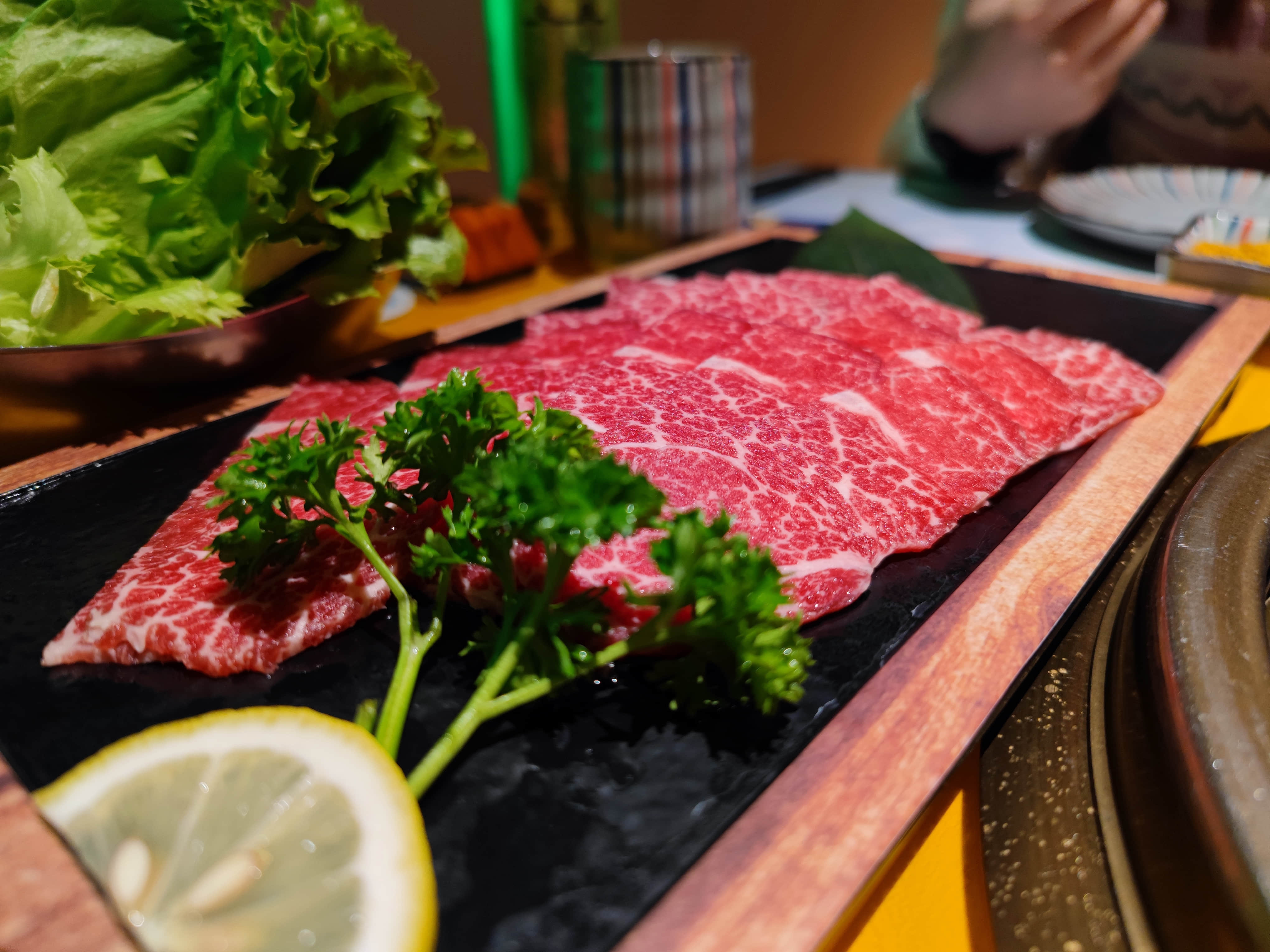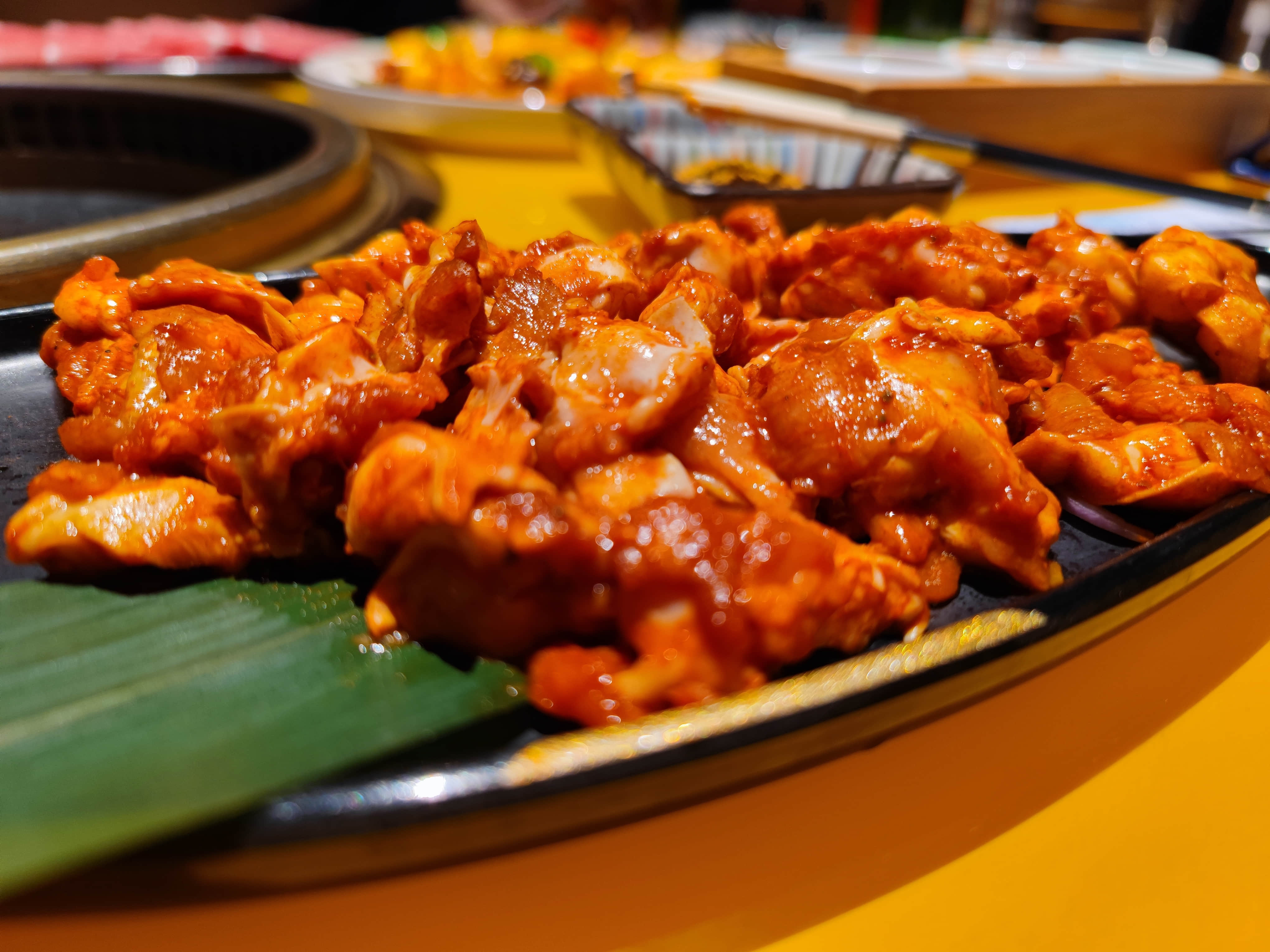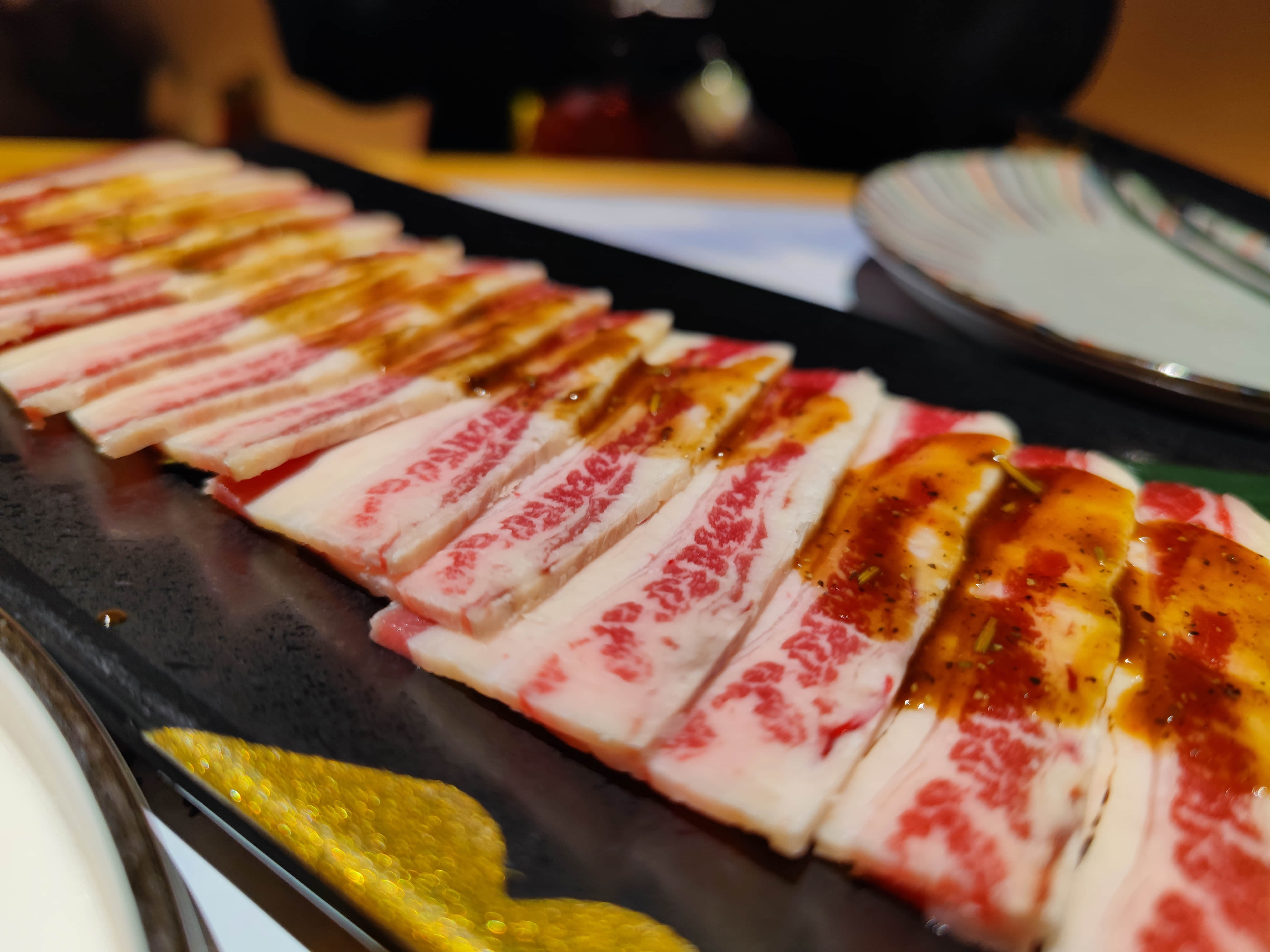 卷卷、书记、🐟他们先到,剩下的包括我在内的人则后到。一进店门我就被卷卷架到书记旁边坐下。整个吃饭的过程中我和🐟一直觉得书记像个可爱的小孩一样,按照🐟的说法,“感觉像是养了个儿子一样”。书记调的料碗里加了超级多的芝麻酱,本来他说是给我调的,还加了三大勺小米椒,被我用我亘古不变的蒜蓉香油碟严词拒绝之后就自己吃了。因为他料碗调得非常满,蘸肉的时候芝麻酱就会溢出来,搞得碗壁和他面前那一块桌面上到处都是。然后他还会自言自语自己吐槽。不禁让我想起来大一整个宿舍去杭州玩的时候,有个舍友可以说是第一次坐飞机,全程也是跟小孩一样各种好奇和惊叹。所以有时候人的性格和风格是很神奇的东西,平常看着是一个样子的人,换了一个环境就会有另一个样子。