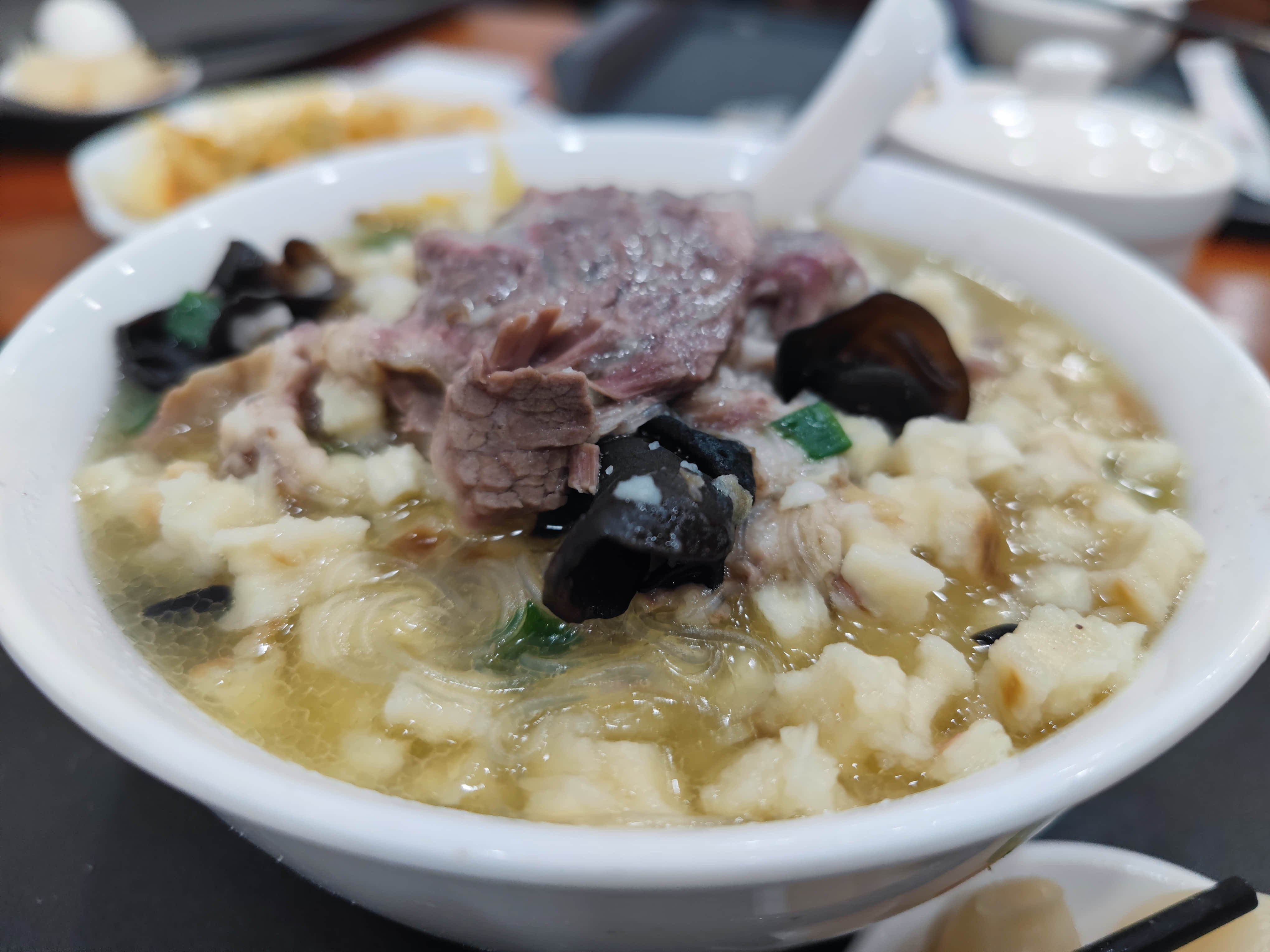 晚饭是 sanzenin 推荐的一家泡馍馆。想了想中午才吃的味千拉面,晚上又是泡馍,这一天下来碳水大爆炸了。老实讲感觉这么多年吃的泡馍没感觉有什么太大的区别,除了有那种做的特别不好吃的之外。这家给我的感受是肉比较厚实。本来我是想自己掰馍的,但最终懒癌还是战胜了欲望。