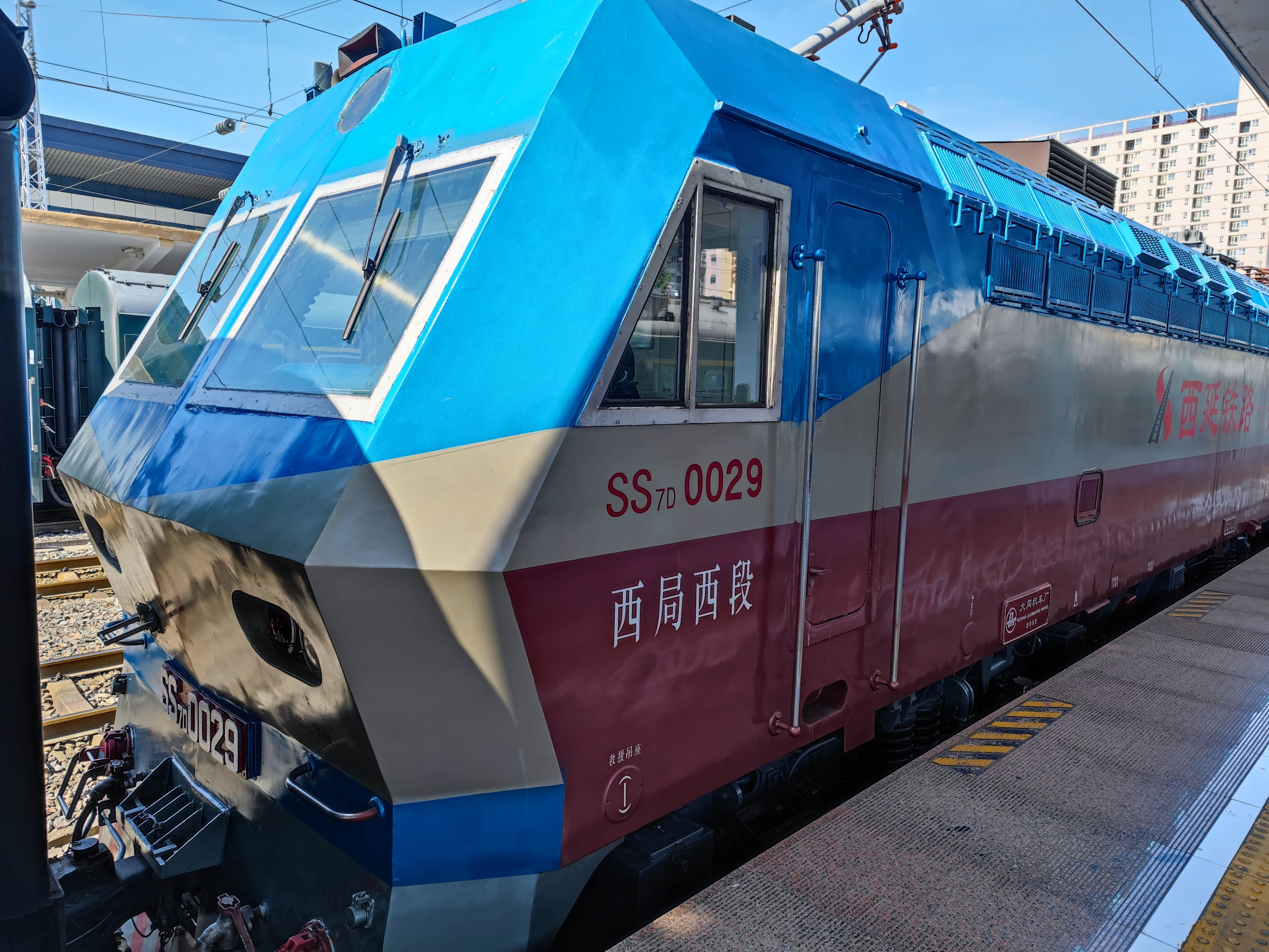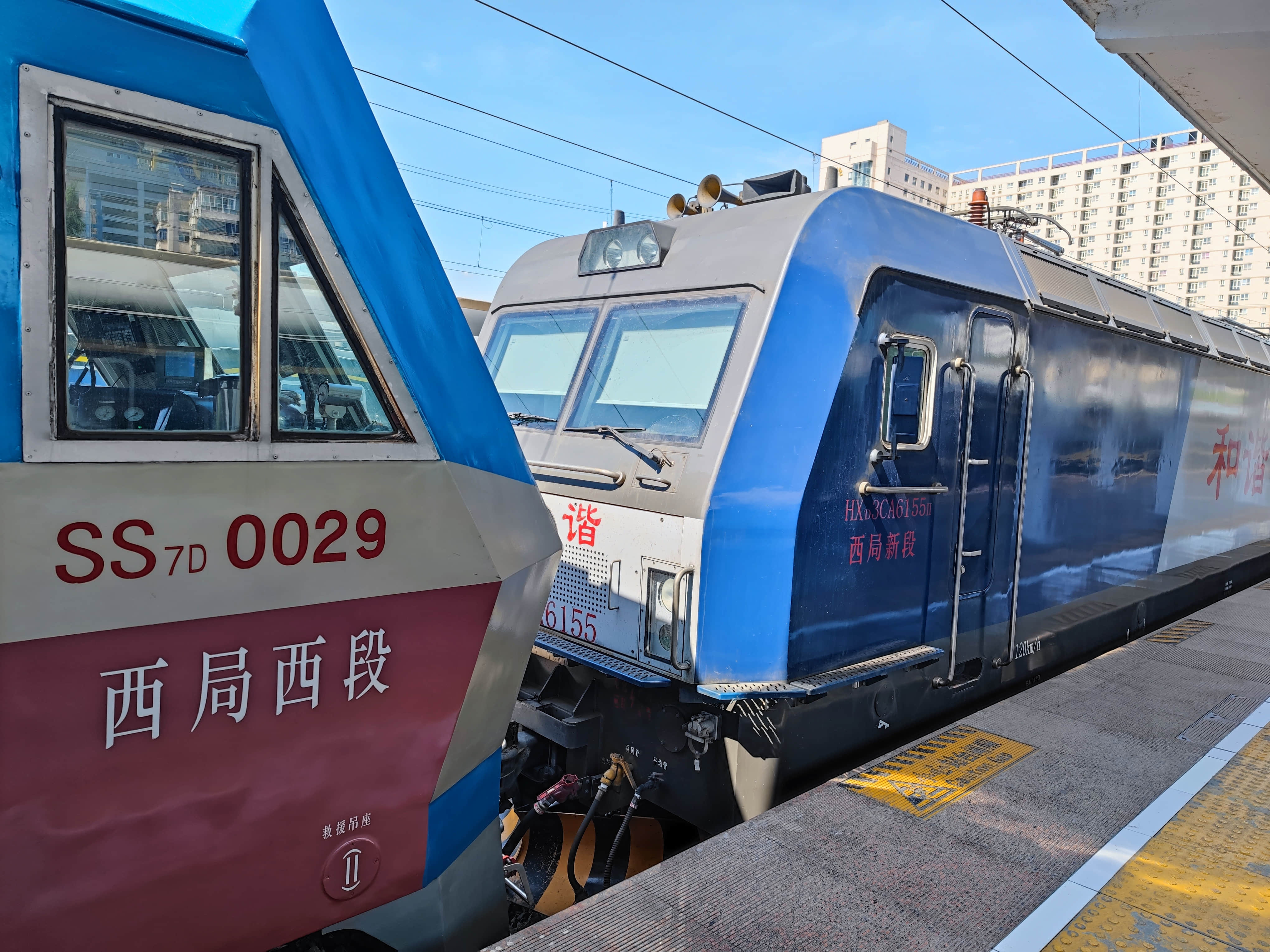 6063 的本务担当是西局西段的 SS7D 和西局新段的 HXD3C。使用两节机车是为了在宝鸡到秦岭区间爬升时能提供足够的动力。不过在宝鸡站的时候 HXD3C 的受电弓并没有升起来。