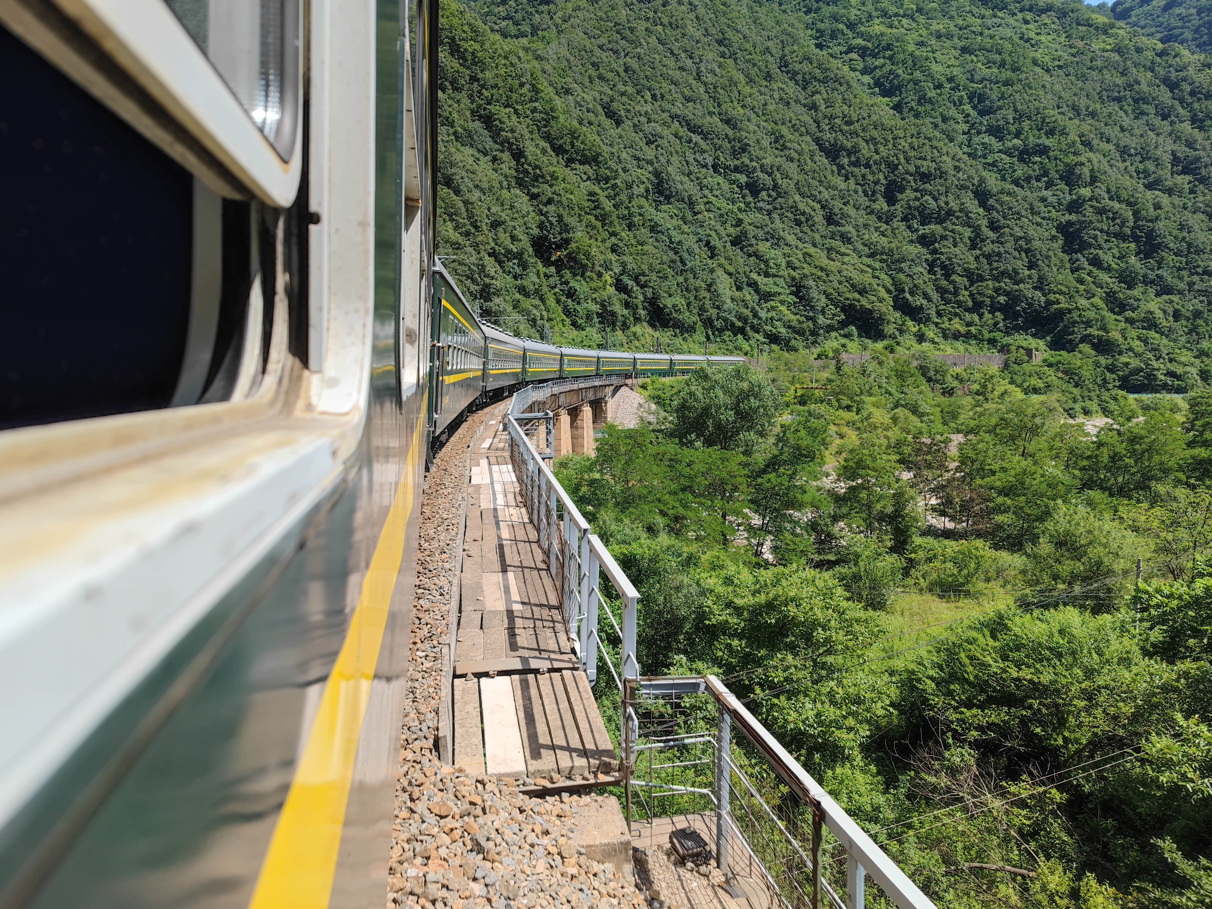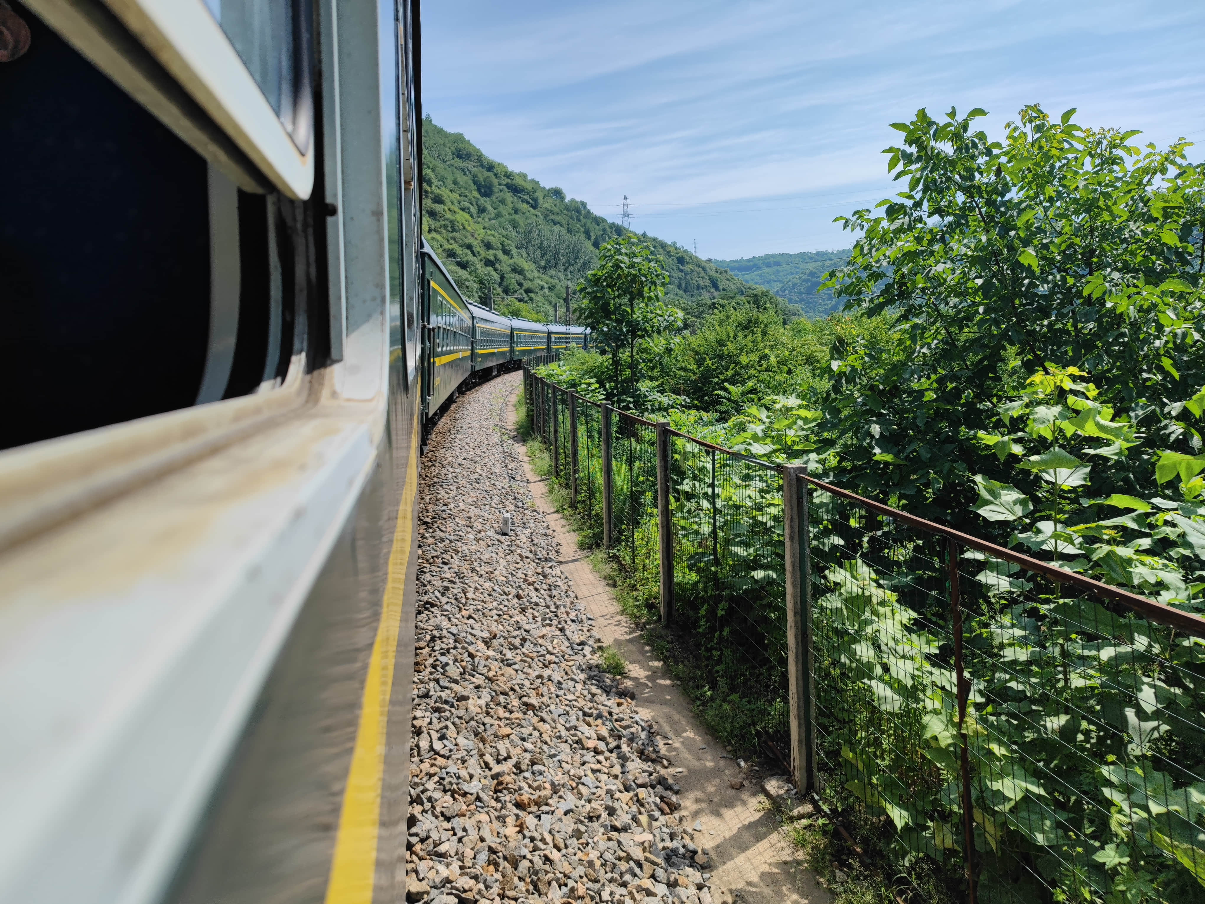 这趟车没有 1 车,所以与 2 车紧挨着的就是机车了。加上窗户能打开,所以机车的鸣笛声在这里可以非常清晰地听见。一阵一阵的鸣笛并没有让人感到聒噪,反而将我的思绪拉回了十几年前的小时候,那段期待着乘坐绿皮火车回老家玩的日子。