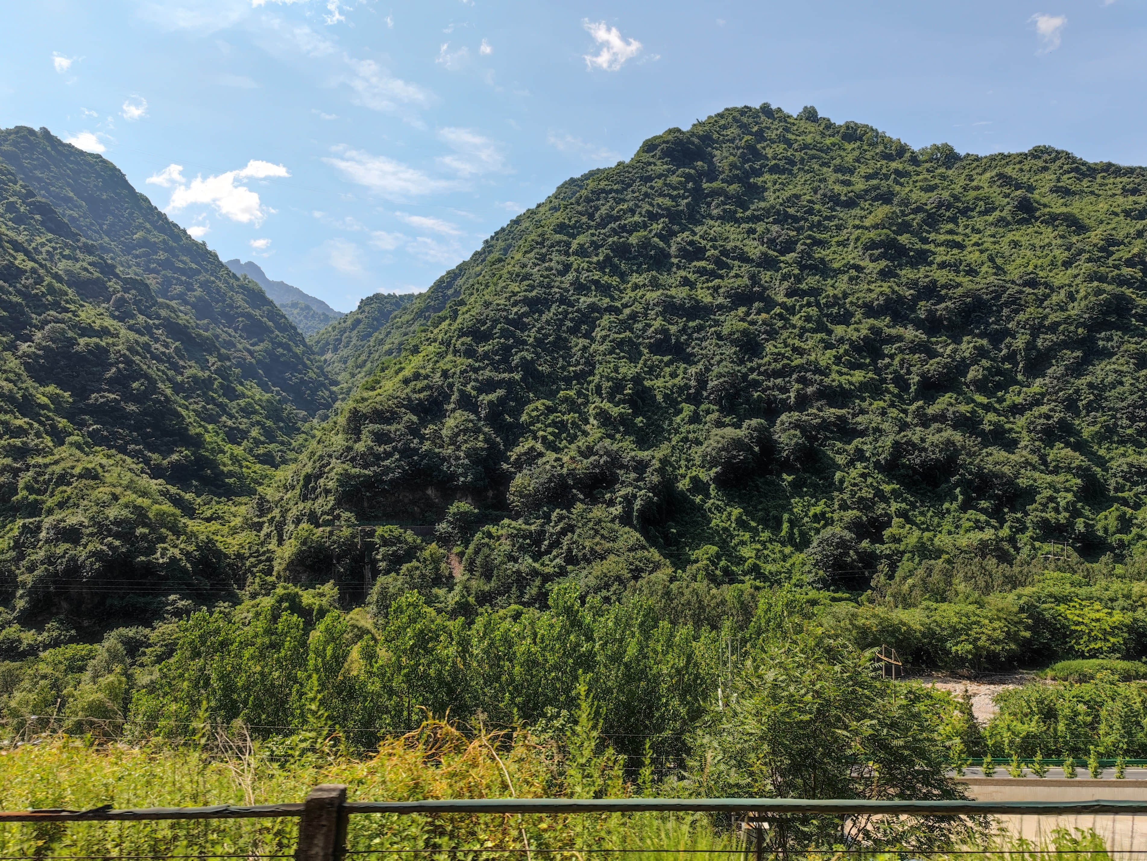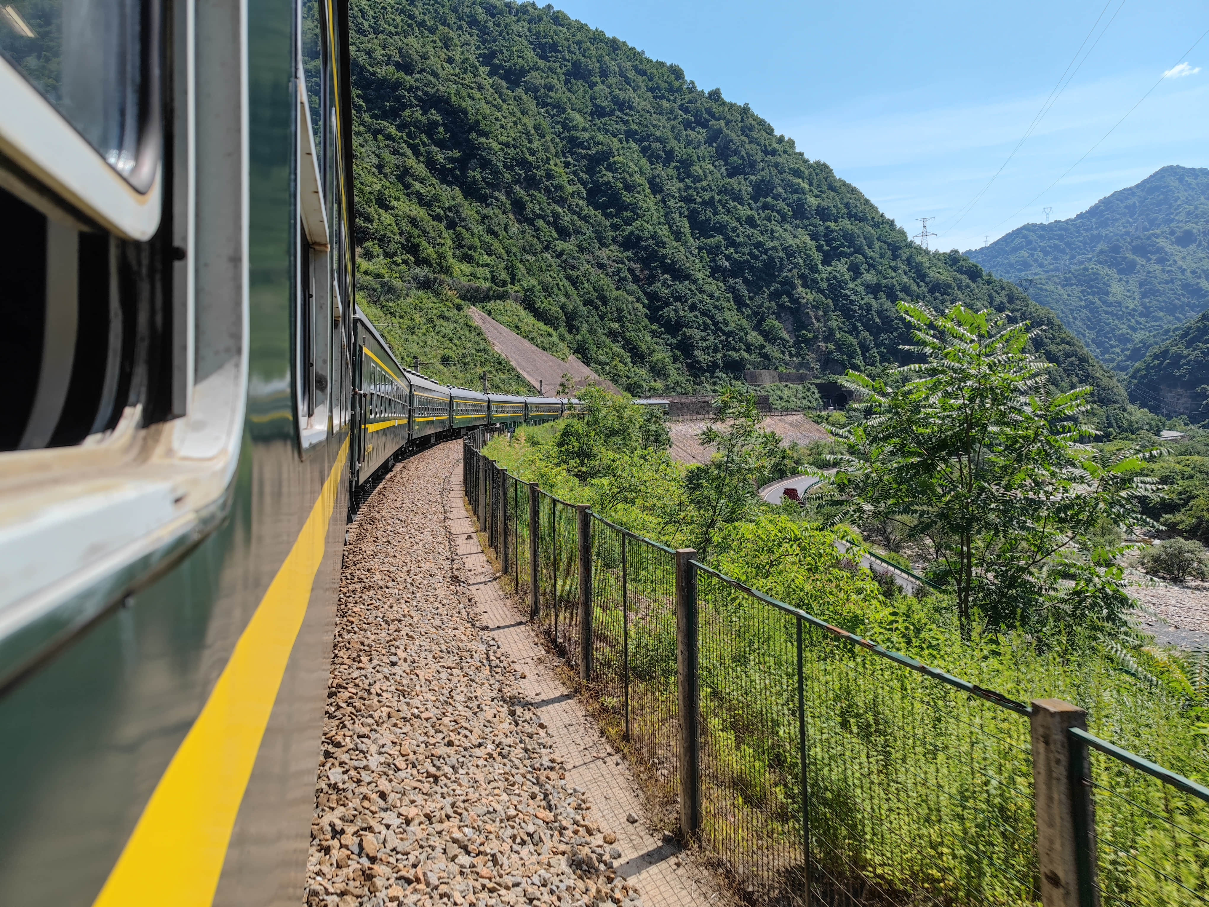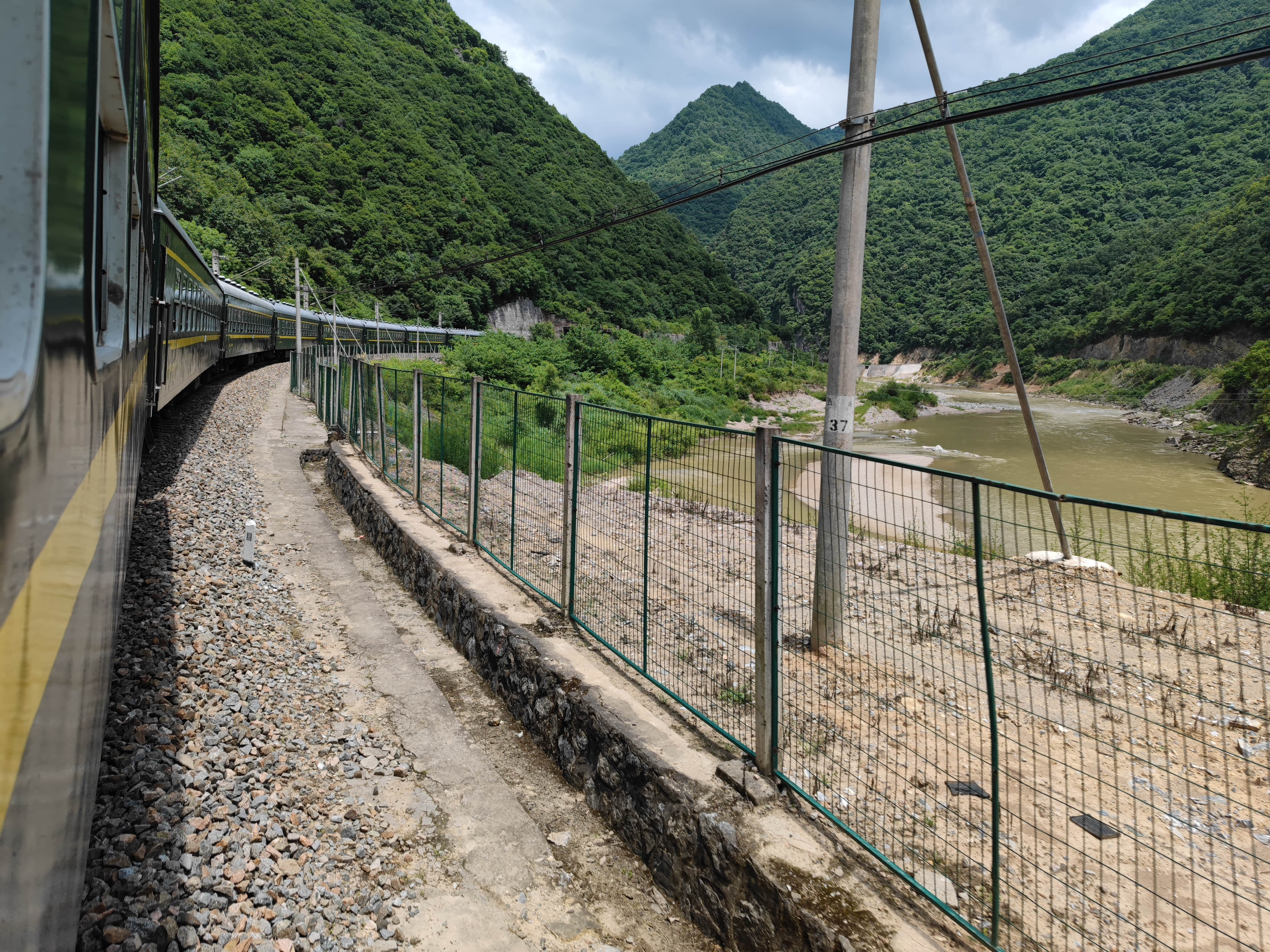 十点钟,列车准点从宝鸡站开出。似乎和小时候对于 25B 的印象不太一样,这趟车的起步速度还是不算慢的。车厢内天花板的的风扇随着缓缓启动的列车,一起转起来。还有从窗外吹进来的凉风,让炎热夏季的小慢车旅途不会那么难受。