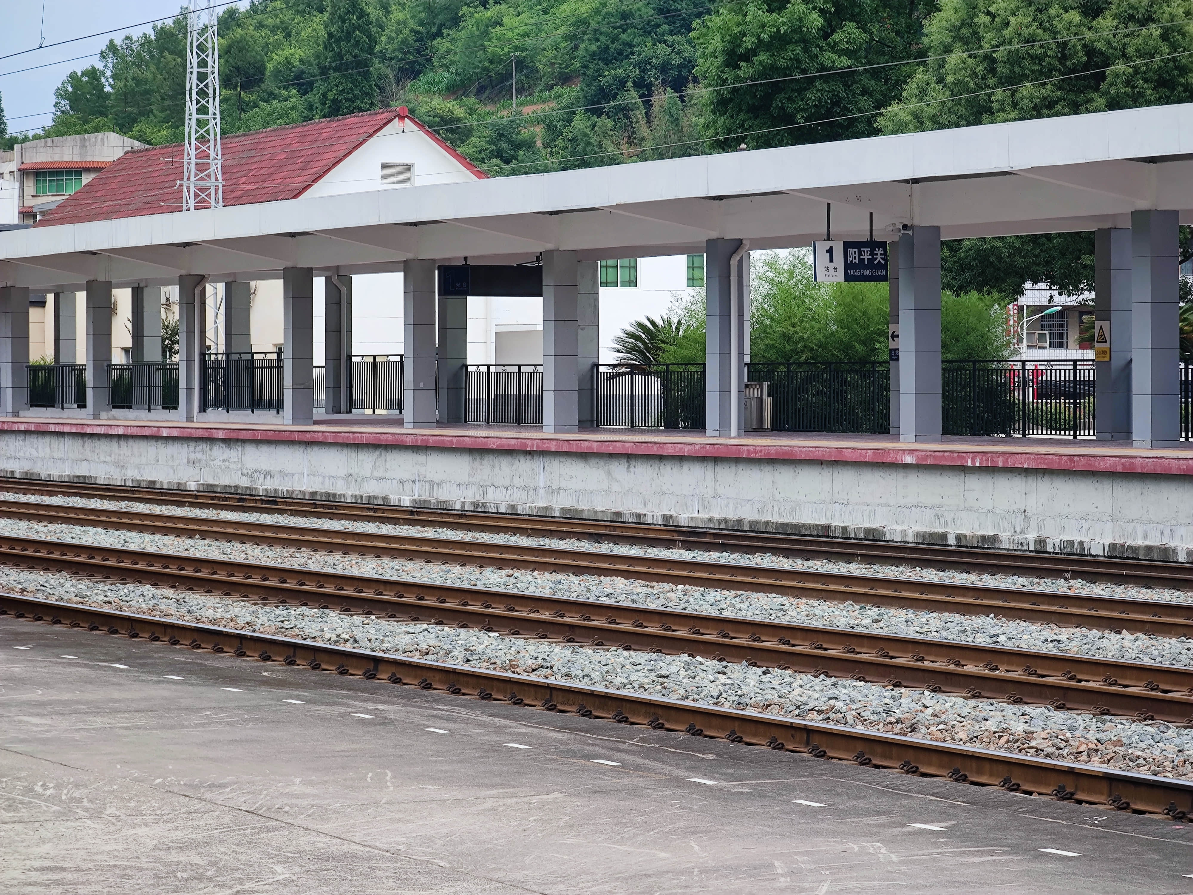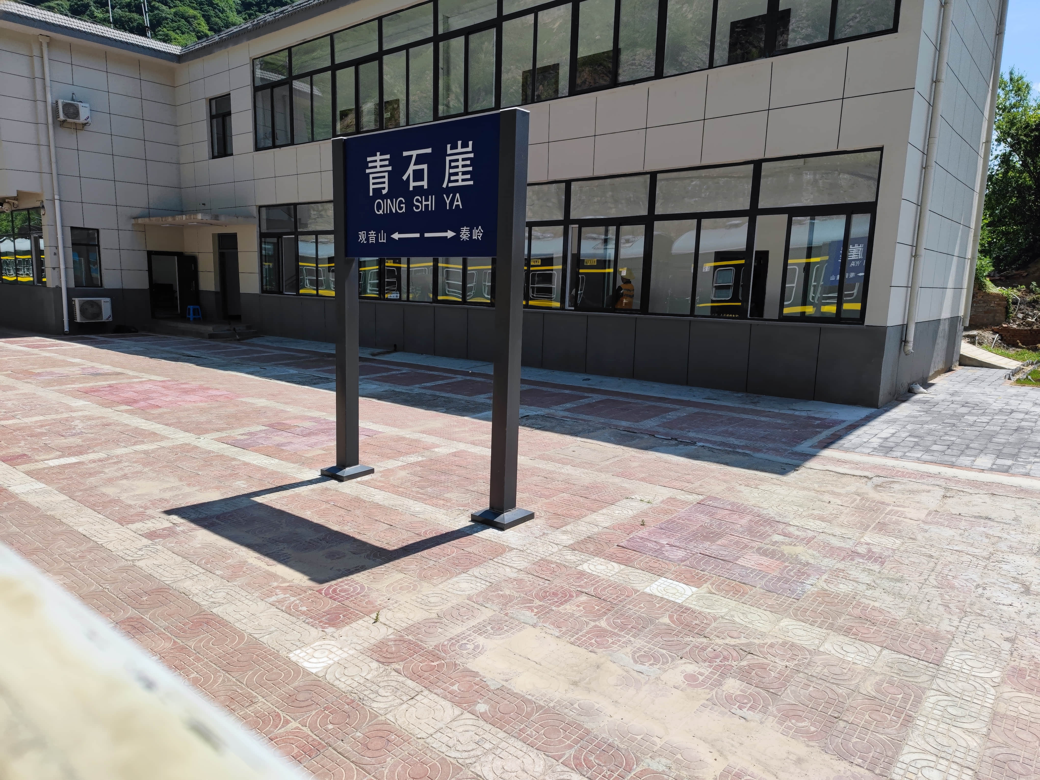 一路上图定停车的站点停靠时间都比较短,基本上只够下车拍一下站牌。有的时候停车位置并没有刚好对上站牌,也就来不及拍了。看得出,靠近宝鸡方向的车站,站牌都已经更换为了新的蓝底白字;另一边的站牌则还是老式的白底黑字。另外,阳平关站应该是这趟车途中停靠的唯一一个规模稍大的车站了。