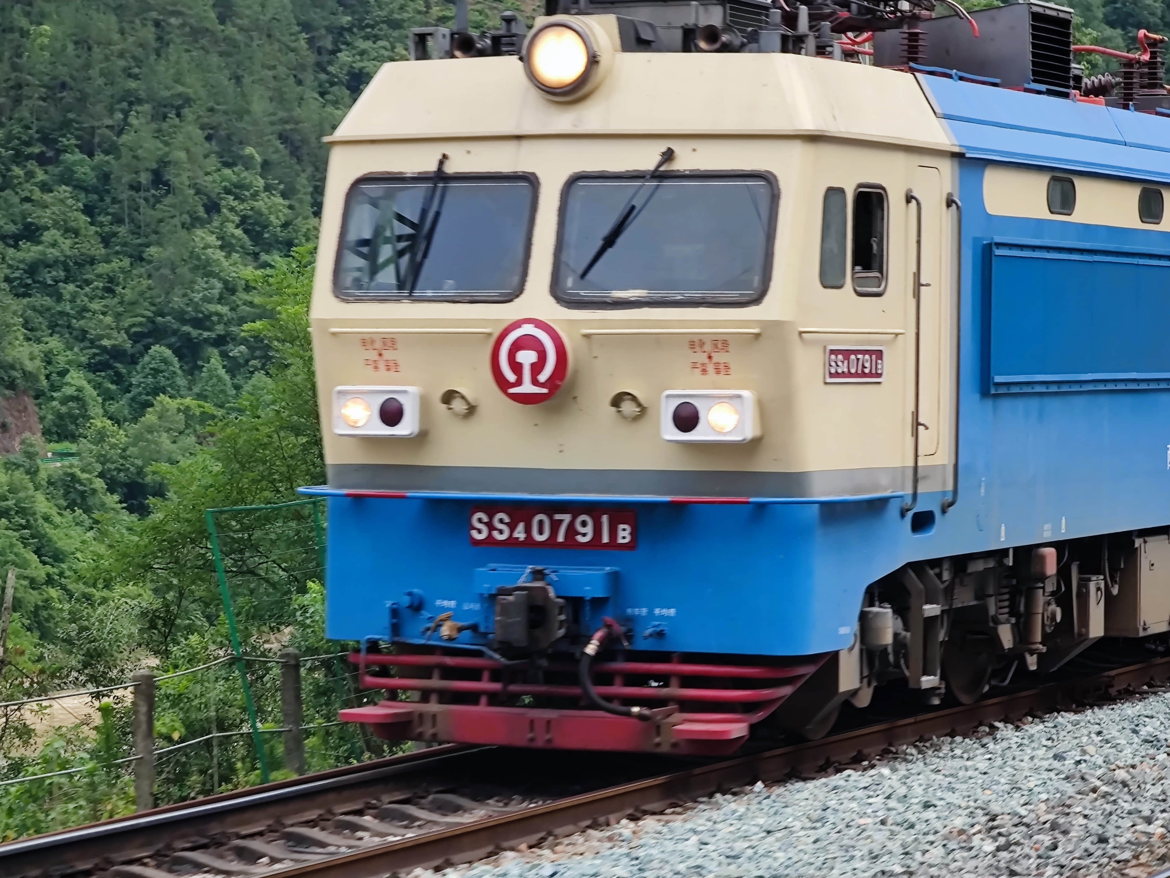 在列车刚进入山区的时候,线路旁边还是潺潺的小溪,不过在经过秦岭站之后,线路就是沿着嘉陵江修建的了。盛夏时节的宝成线,沿途除了汹涌的江水,还充满了生机盎然的绿。