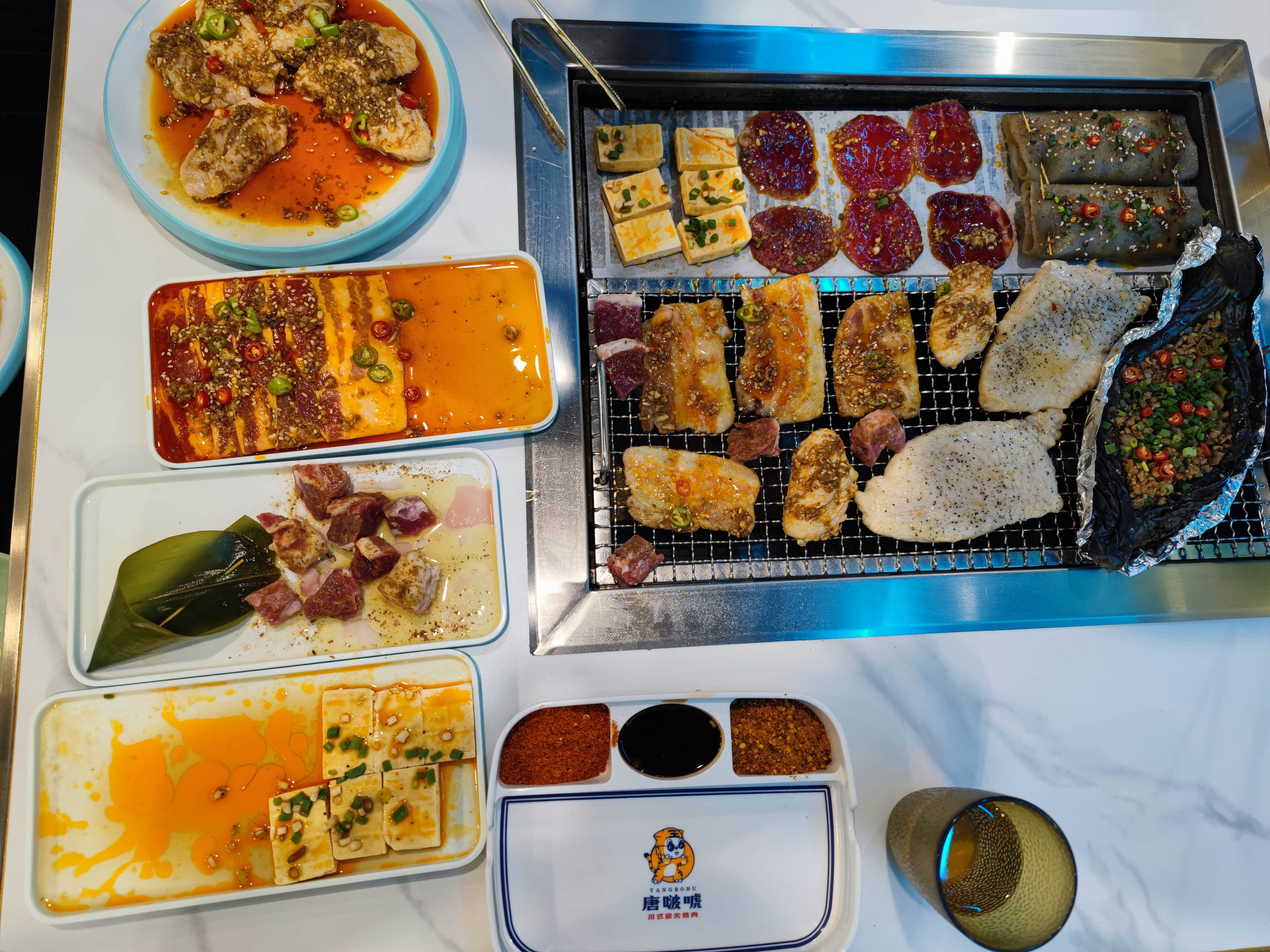 把包放下之后,稍事休息之后,我们就出去吃饭了。随便找了家评分还不错的烤肉,打了车过去。小城市的一个好处就是物价比较低。虽然看菜单上的价格只是略低于西安,但真当菜全部上来之后才发现两个人根本吃不完。我和书记边吃边休息才好不容易解决掉了所有的东西。