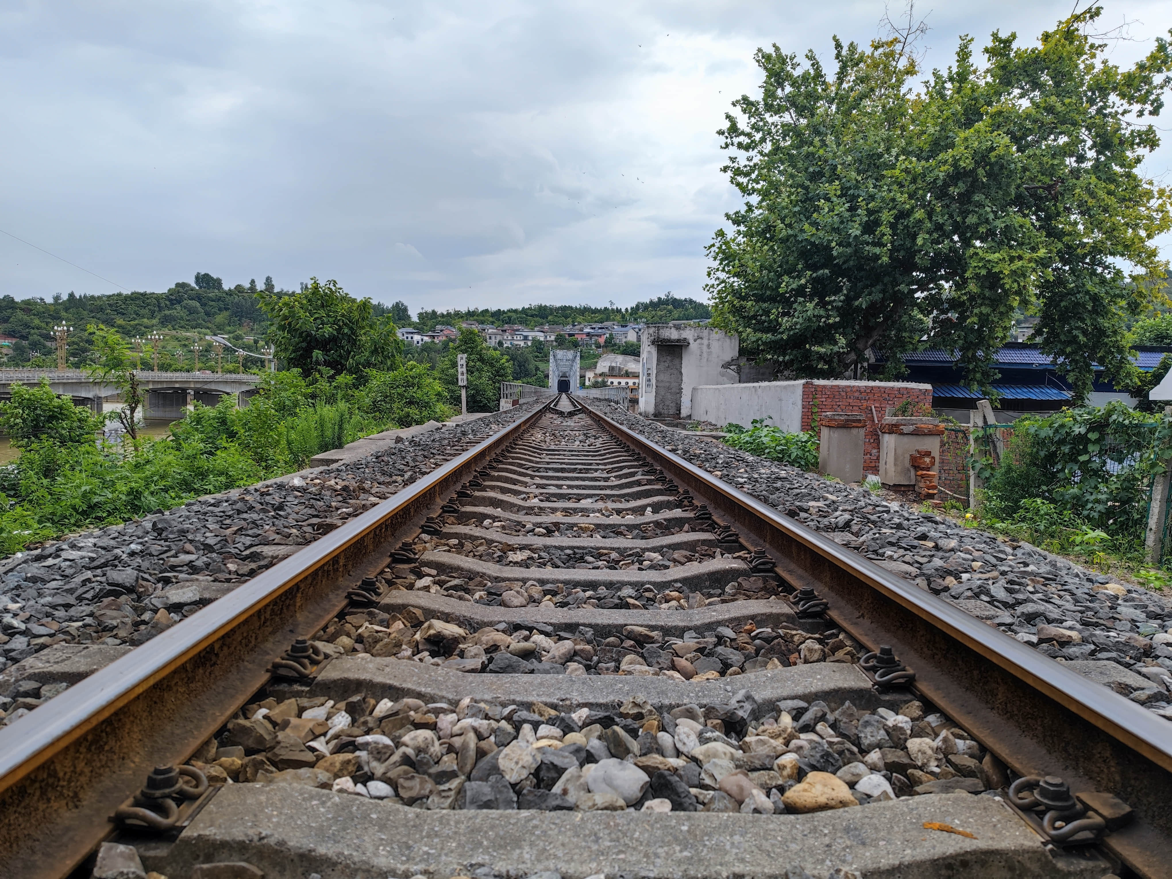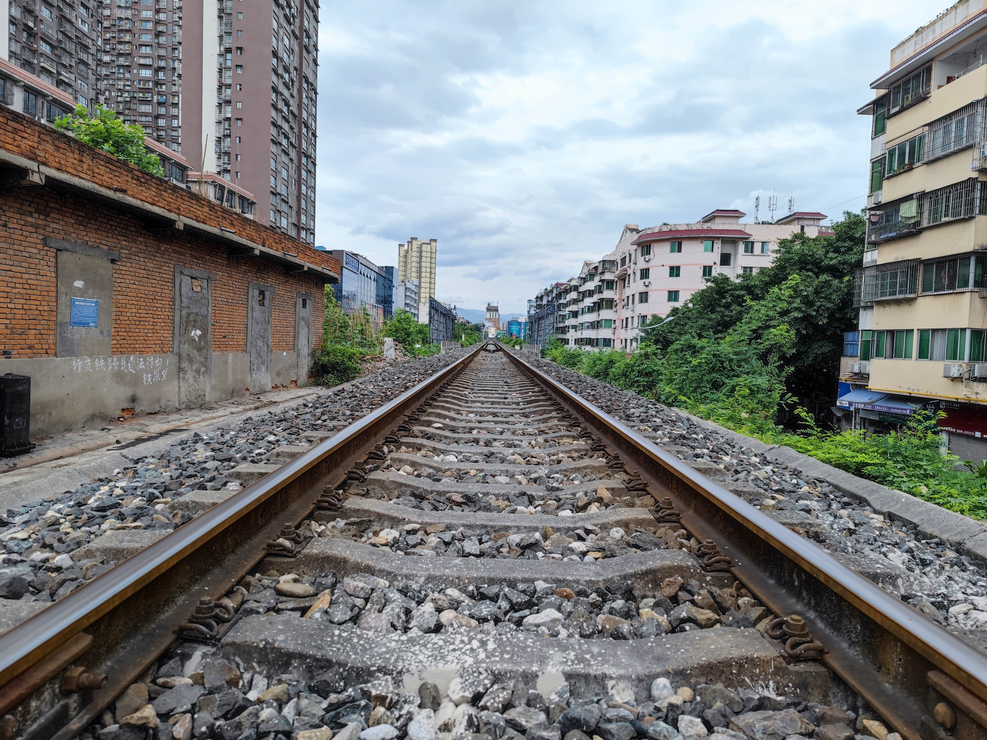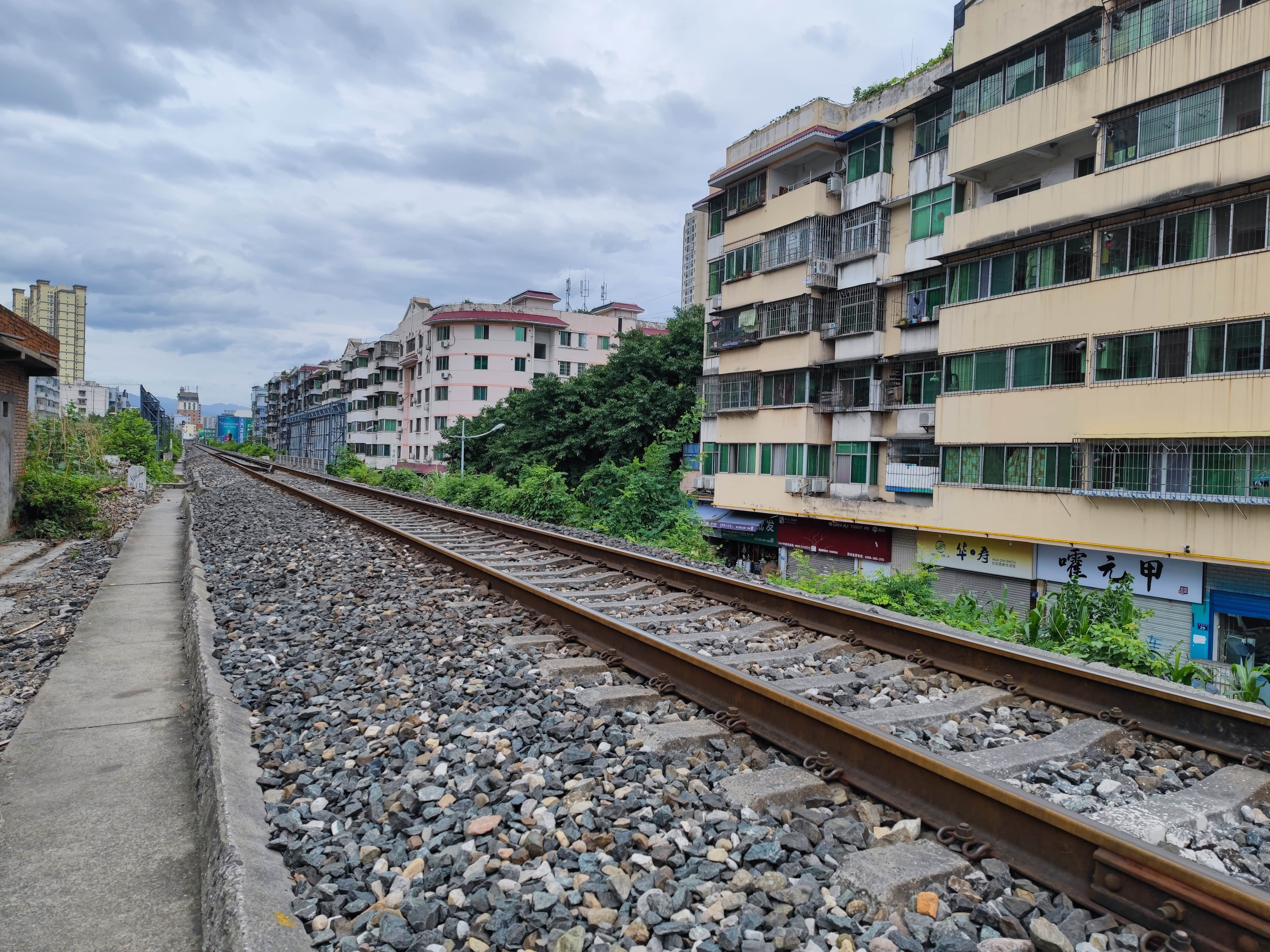 继续往前走,旁边的房子中间有一条小路直通铁路正线,并且没有任何围挡。这可太让我们激动了。要知道这是一条正在营运的,而且还是刚刚有车通过的铁路线。