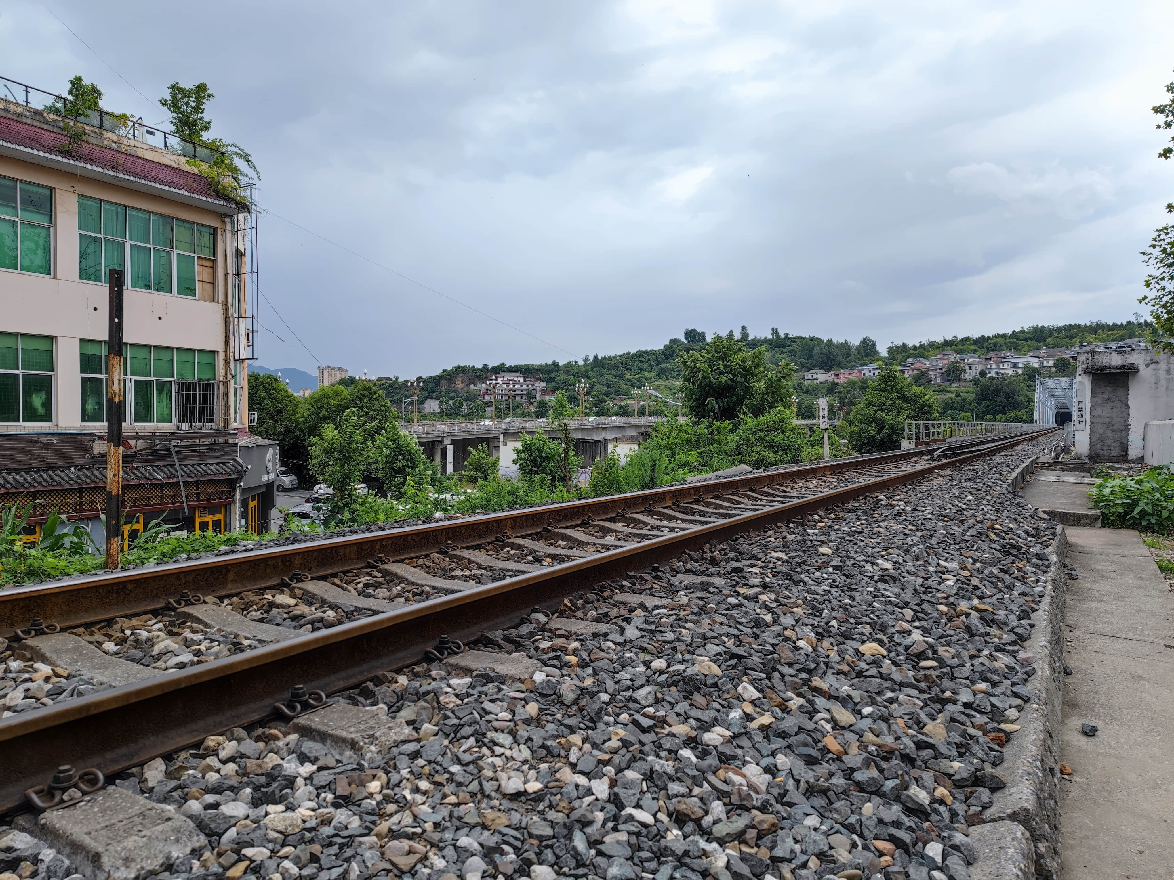 中间路过一段铁路线,在我们正准备过马路的时候突然听见了鸣笛,于是赶紧开相机录像。有点小可惜的是,不是客车而是货车。不过后来查了一下,这条线路目前只有货运业务了。