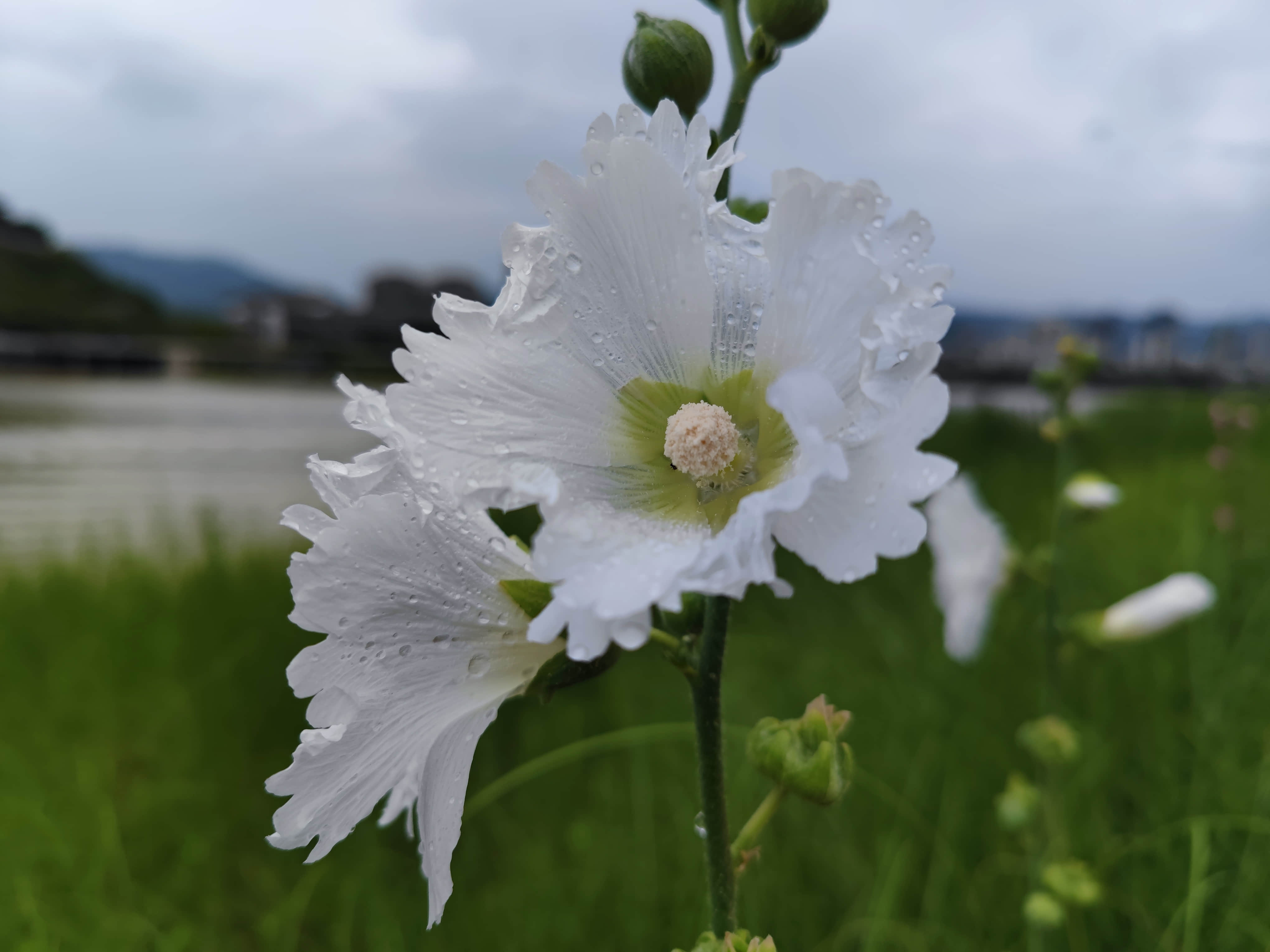 雨停之后我们便离开了这家店,继续沿着嘉陵江往车站方向走。本来我们是在大路下面真正靠着江岸的步道上走,但书记觉得路上太多蜗牛比较烦人,就又回到了上面的人行道。这个在我们看来是人行道的地方,在当地其实算沿江公园。不过在下面的时候,看到有几朵花在刚刚经过雨水洗涤之后,变得分外好看。另外,江边有很多正准备下水游泳的人,江里也有背着浮标正在有用的人,很佩服他们的毅力啊。