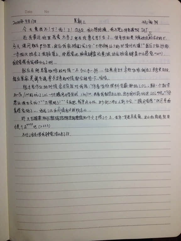 由于写作业的速度简直太慢了,所以几乎每天晚上都是 12 点多才睡,更丧心病狂的是最近学校的习题越来越多,简直不能忍受! 另外这周物理和数学小测,成绩根本没法见人,数学老师讲卷子的时候还亲切地问了一句:“你昨天是不是生病了?”当时真想找个地缝钻进去 QAQ 物理 84/100 数学 69/120