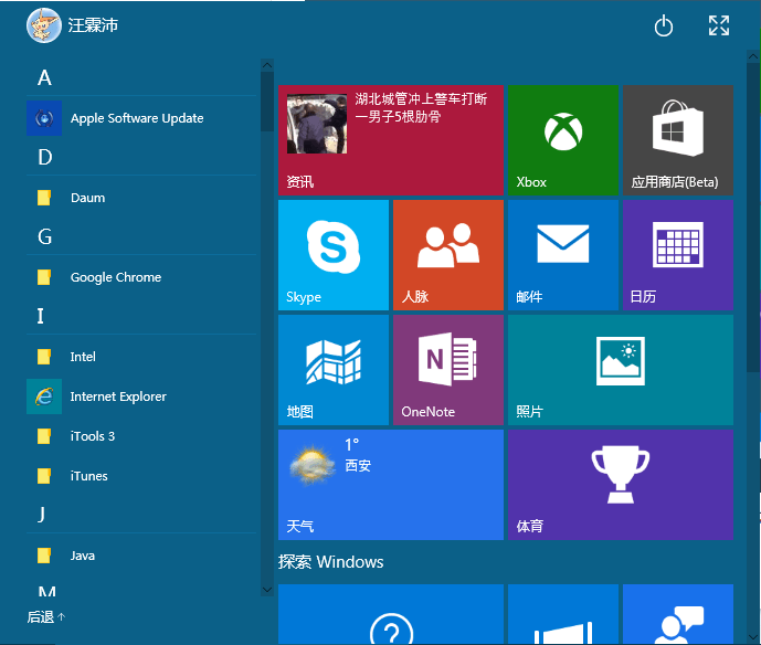 不过,新的开始菜单无法调整大小。并且,在焦点上还存在一个问题,就是打开开始菜单后如果把指针直接移向右侧应用区,会无法使用鼠标滚轮滚动,这时候在开始菜单空白区域任意位置点击一下才能恢复。